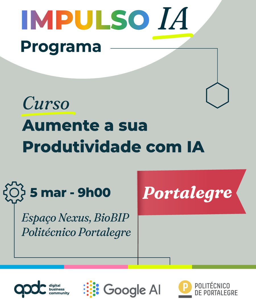 O IMPULSO IA, uma iniciativa da APDC em parceria com a Google, chega a Portalegre para te dar as ferramentas essenciais para o futuro digital!