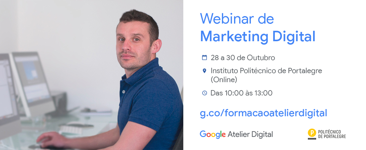 A Google, em parceria com o Instituto Politécnico de Portalegre realiza, entre os dias 28 e 30 de Outubro, o webinar Atelier Digital que visa formar os portugueses (com ou sem formação académica, empregados ou desempregados) em competências digitais, dotando-os das ferramentas necessárias para reposicionar-se no mercado ou colaborar na transformação digital de seus negócios, contribuindo para fomentar o empreendedorismo em Portugal.