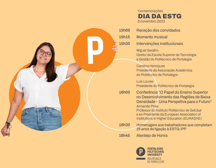Save the date • 33º ANIVERSÁRIO DA ESTG • A nossa ESTG - IPPortalegre assinala, dia 6 de novembro, 33 anos do início das suas atividades letivas! Venha celebrar connosco!